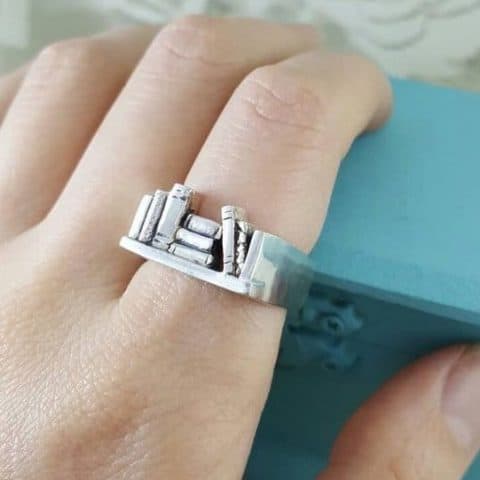 I know statement jewelry pieces are a thing, but it’s hard for me to pull off a bookish statement piece. As an introverted reader, I don’t feel the need to shout my book love with my jewelry, but it is fun to include a small nod to my literary lifestyle in my outfit.