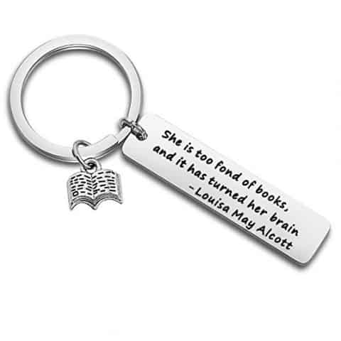 Tasteful book jewelry and gift ideas for book lovers, including book necklaces, bracelets, rings, earrings, keychains, tie clips, and pins.